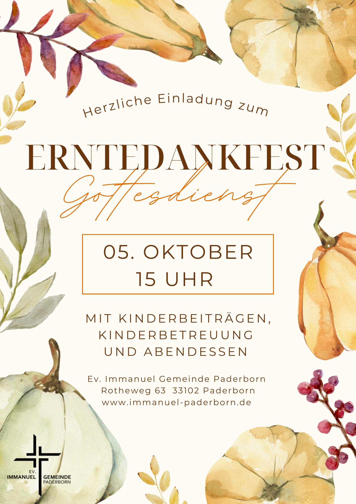 Herzliche Einladung zum Erntedankfest! Wir möchten gemeinsam Gott danken, Ihn loben und Preisen, und seine Gaben genießen!