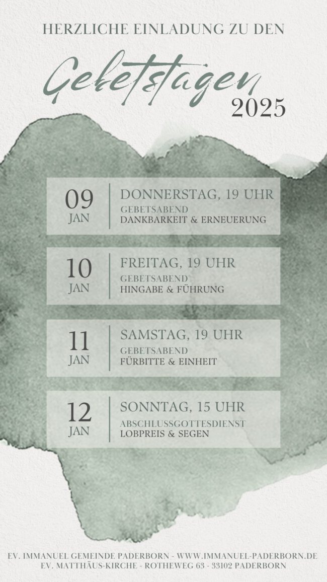 Herzliche Einladung zu unseren Gebetstagen 2025. Heute möchten wir für die Hingabe und Führung beten!
