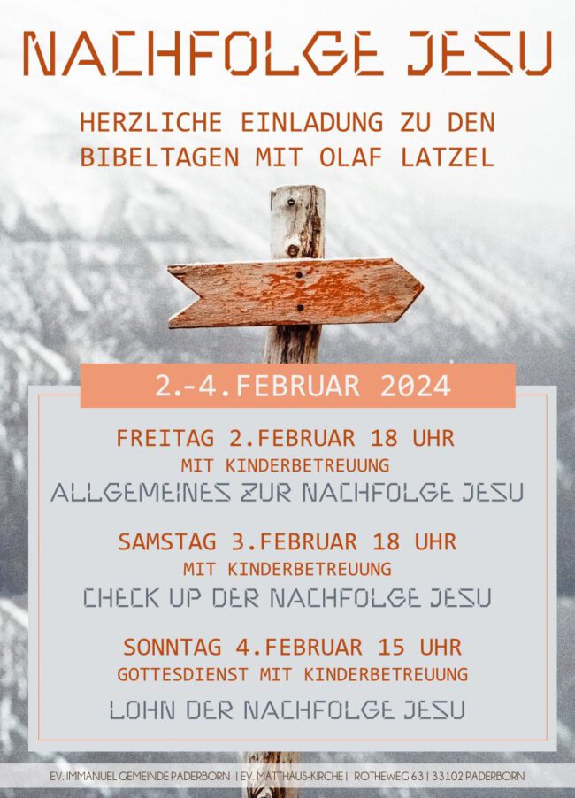 Bibeltage mit Olaf Latzel Thema der Bibeltage: Nachfolge Jesu Thema des Abends: Allgemeines zur Nachfolge Jesu.