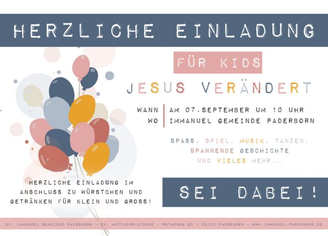 Kinderveranstaltung – Thema: Jesus verändert Herzliche Einladung im Anschluss zu Würstchen und Getränken für Klein und Groß!